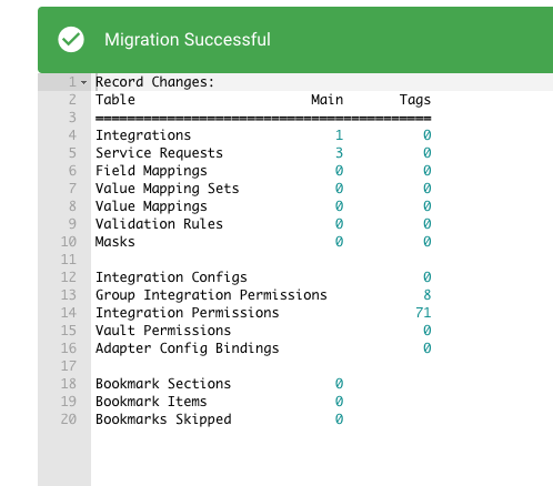Verify that the correct integration(s) were migrated by reviewing the migration summary (pictured below).