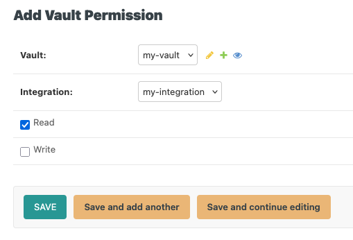 3\) Fill out the form to give "my-integration" permission to read from "my-vault"